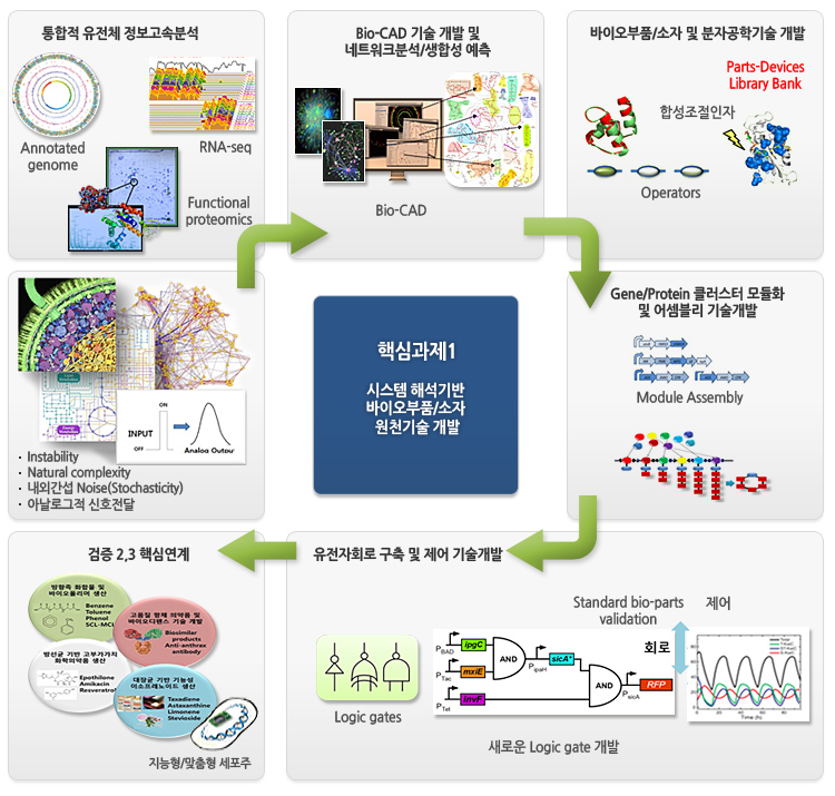 ÇٽɰúÁ¦ 1 : ½Ã½ºÅÛ ÇØ¼®±â¹Ý ¹ÙÀÌ¿ÀºÎǰ/¼ÒÀÚ ¿øÃµ±â¼ú °³¹ß ¹ÙÀÌ¿À½Ã½ºÅÛ µðÀÚÀαâ¼úÀ» ¹ÙÅÁÀ¸·Î ÀΰøÁ¶Àý ¹× °øÇÐÀû Ȱ¿ëÀÌ °¡´ÉÇϵµ·Ï À¯ÀüÀÚ/´Ü¹éÁúÀÇ ±â´ÉÀ» ºÐÇØ¤ýºÐ¼®(abstraction), Ç¥ÁØÈ(standardization)ÇÏ°í ´Ù¾çÇÑ »ý¸í¿ä¼Ò¿¡ Àû¿ë